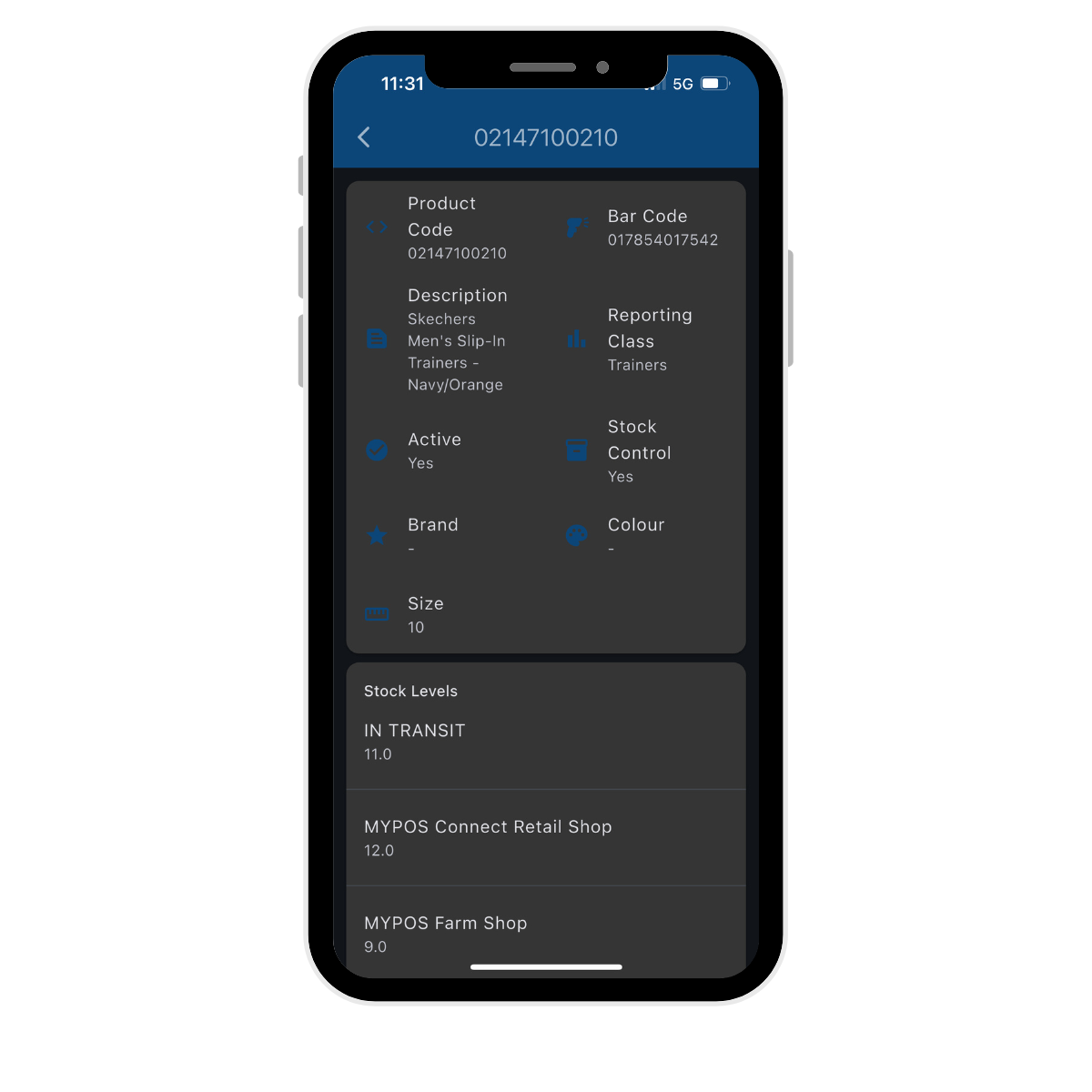 3. Once you’ve selected the required product, detailed information will be displayed - including stock levels across all locations.