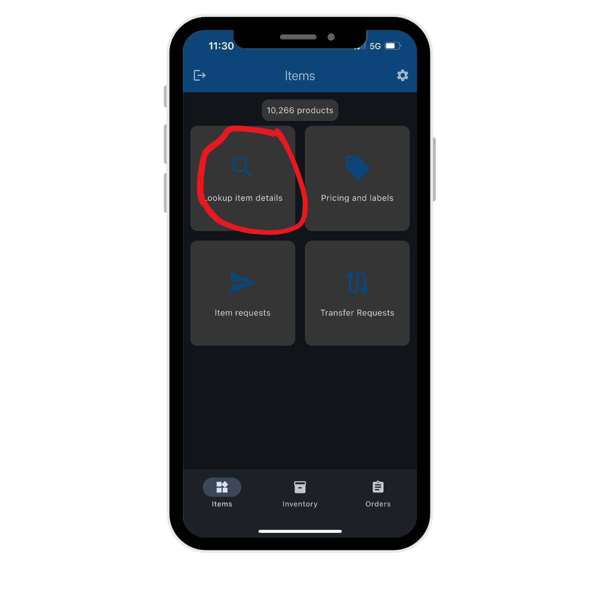 1. Tap on Lookup Item Details in the app menu.