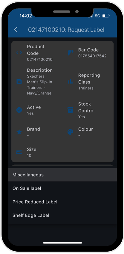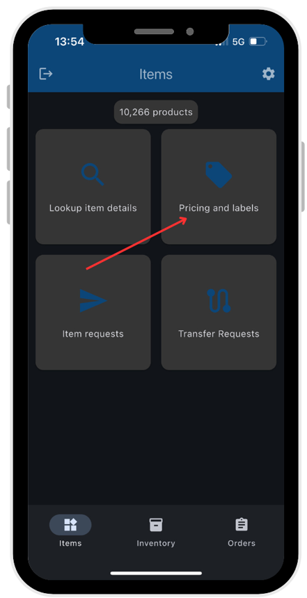 1. Tap Pricing and Labels from the menu in the Store Assist app.