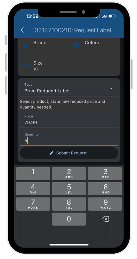For requesting labels in the app, go back to the search screen, and select Request Label. Then choose the type of label you want to request: