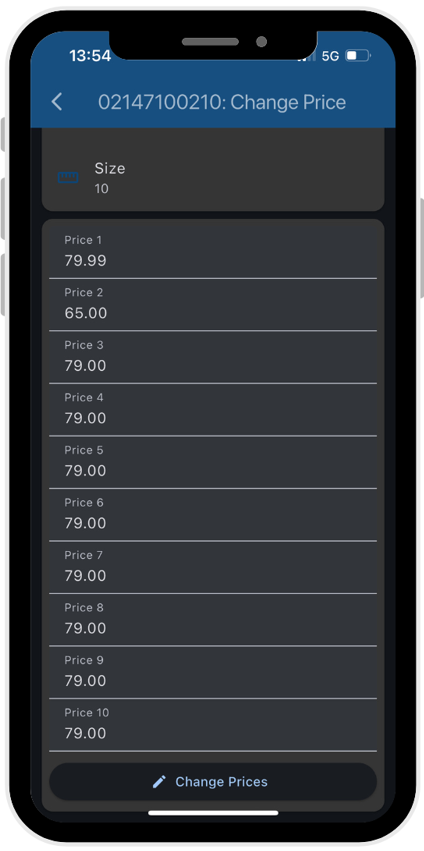 • Update product prices (Price Bands 1–10) directly within the app - without needing to log into the portal.