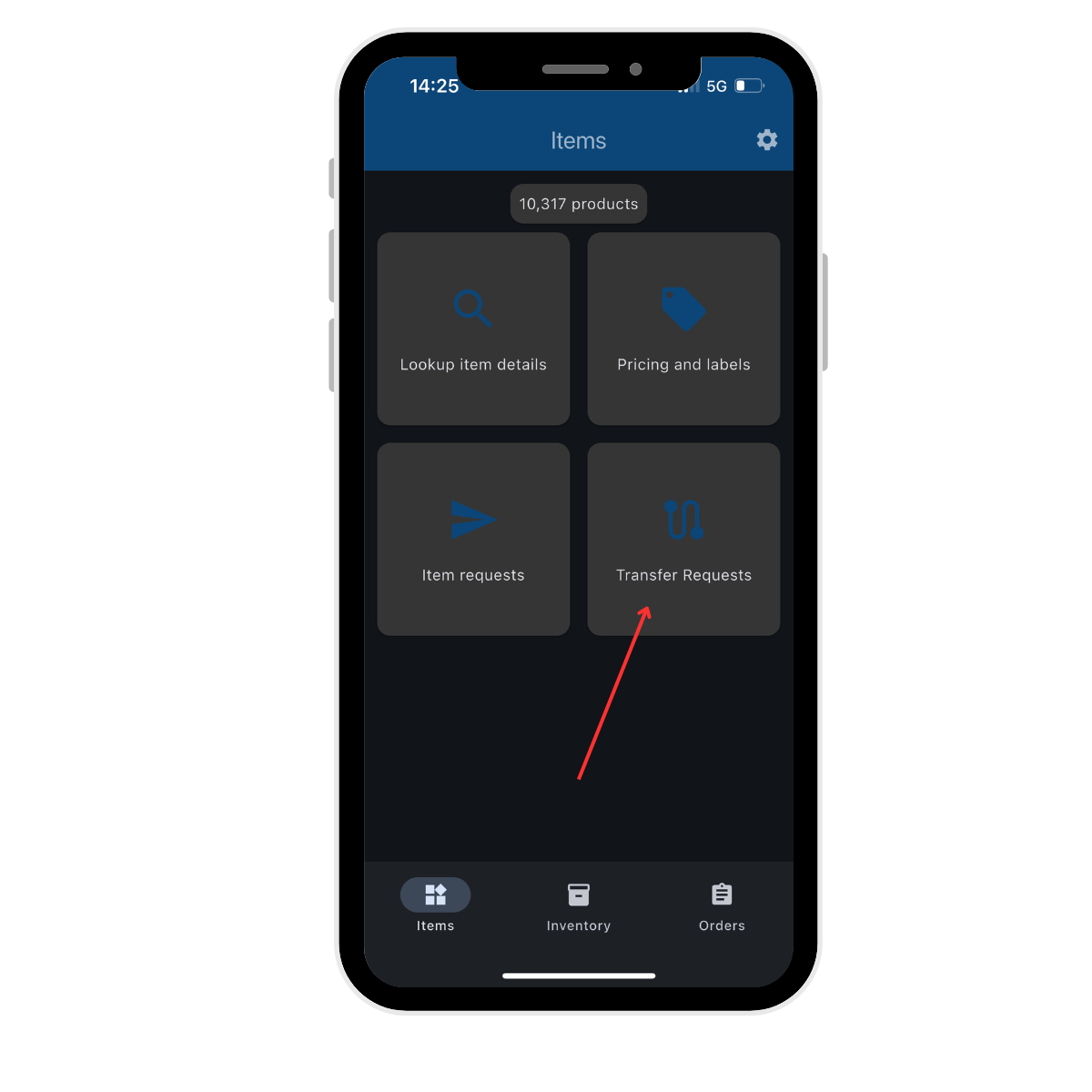 - Open the Store Assist app and navigate to Inventory > Transfer Requests.