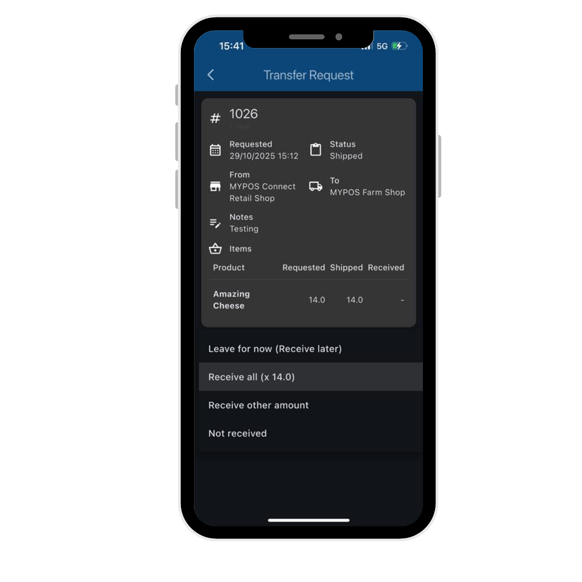 The Store Transfer Requests (STR) function allows users to transfer stock between stores, including central warehouses and distribution centres. Using the Store Assist app, users can create, approve, reject, and receive transfer requests directly from their device.