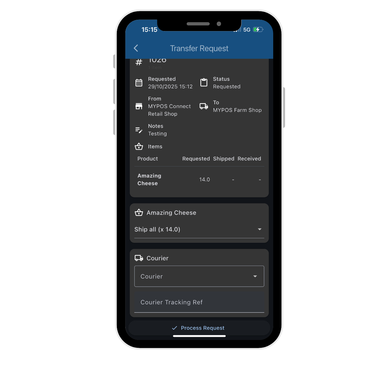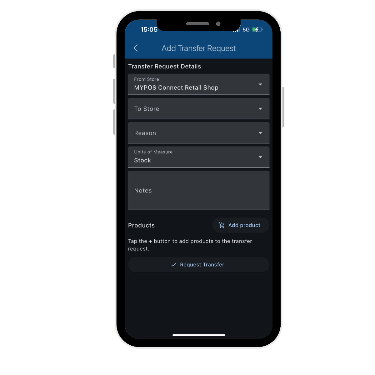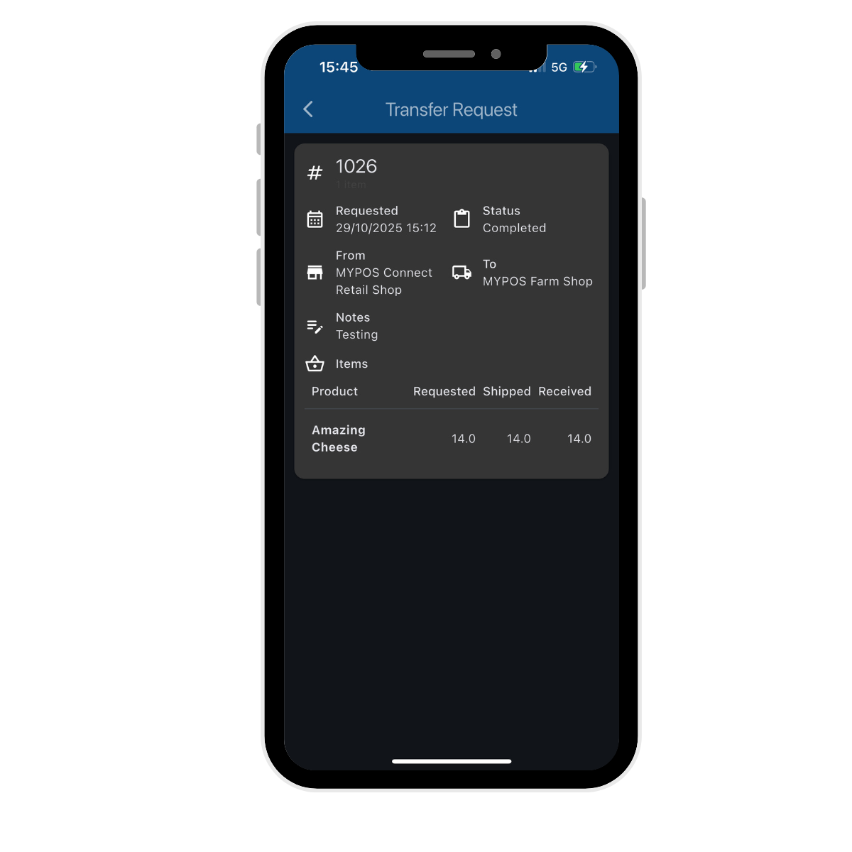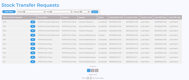 All Store Transfer Requests are synchronised with the MYPOS Connect Portal in real time and can be viewed under: