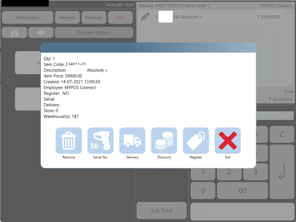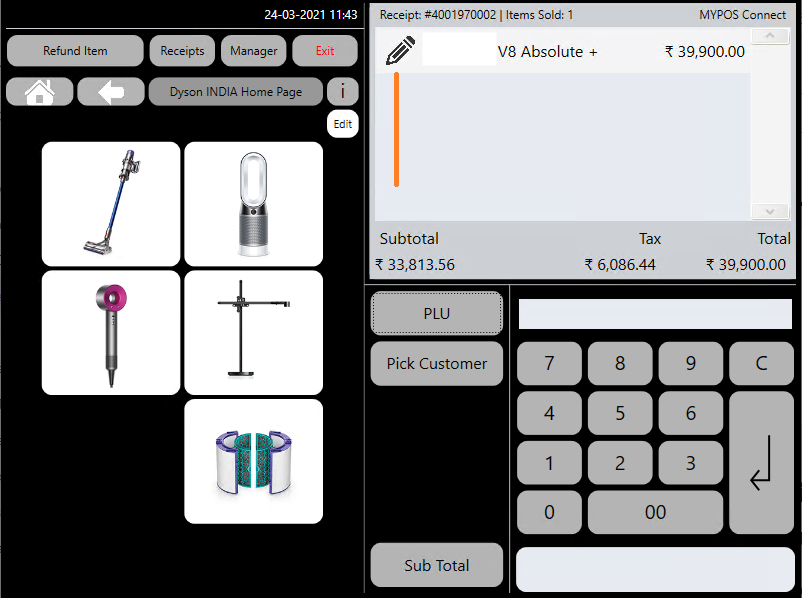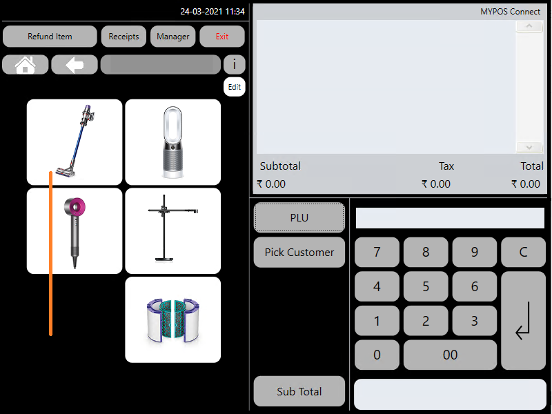 If the barcode exists in the MYPOS system the product will be loaded into the Till Roll