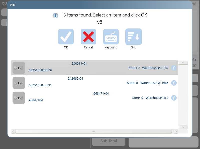 Select the PLU (Product Look Up) ButtonStart typing some information about the product, for example the product description, the barcode or the product code, as you type results which match will appear