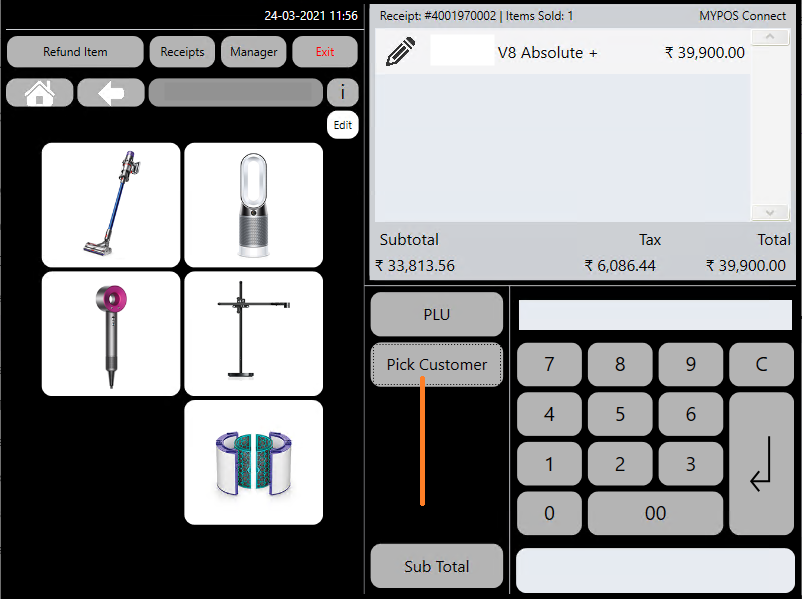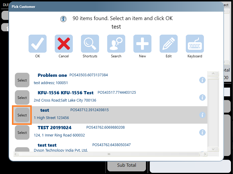Once you have pressed the 'Select' button for the correct customer, their name will show in the till roll.