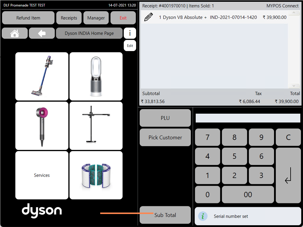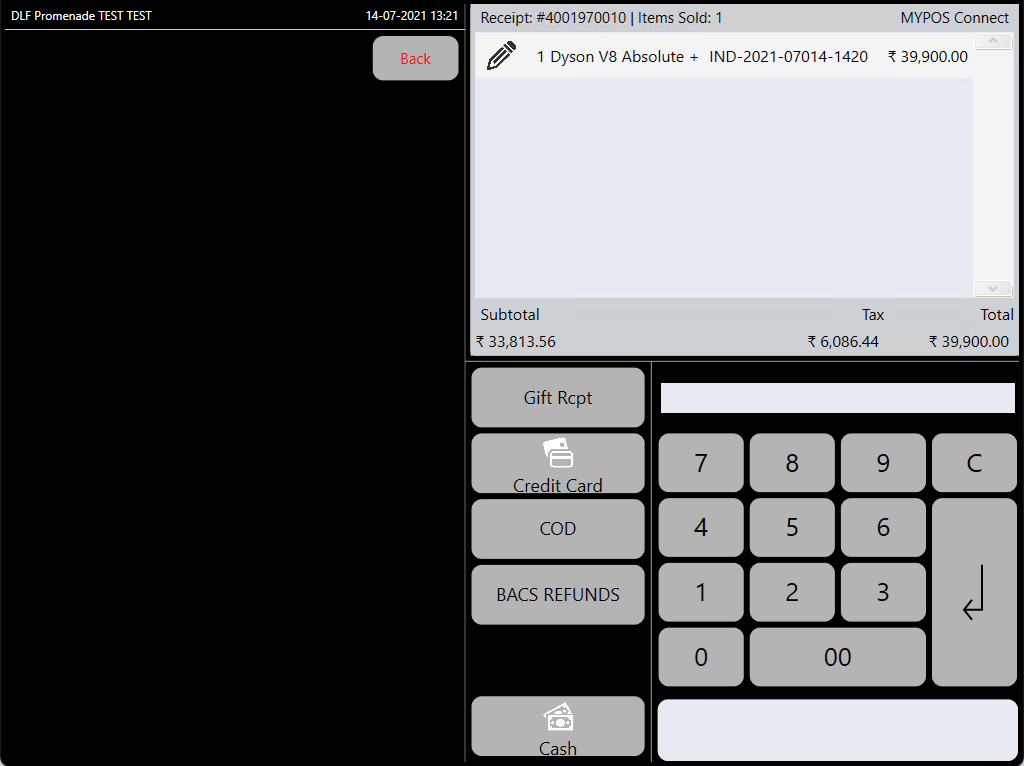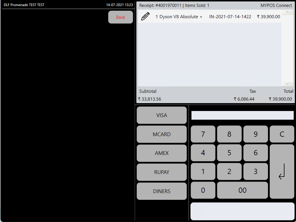 After the Product(s) have been scanned/selected, the customer has been added and the serial numbers/warehouse delivery options have been selected you are ready to proceed to the payment stage.