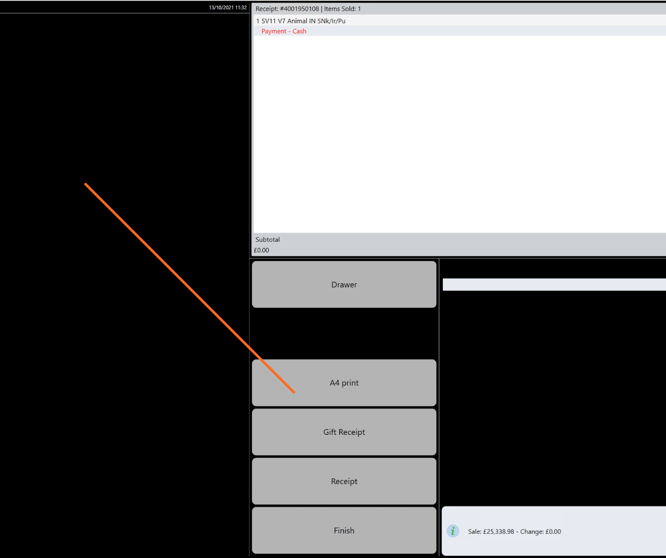 Once the payment is complete an optional A4 Invoice print is possible, to print select the 'A4 Invoice' option on the final screen of the transaction, a pop up will appear allowing you to choose to print to pdf or a real printer, select the correct one, then select the printer and the A4 Invoice will be printed