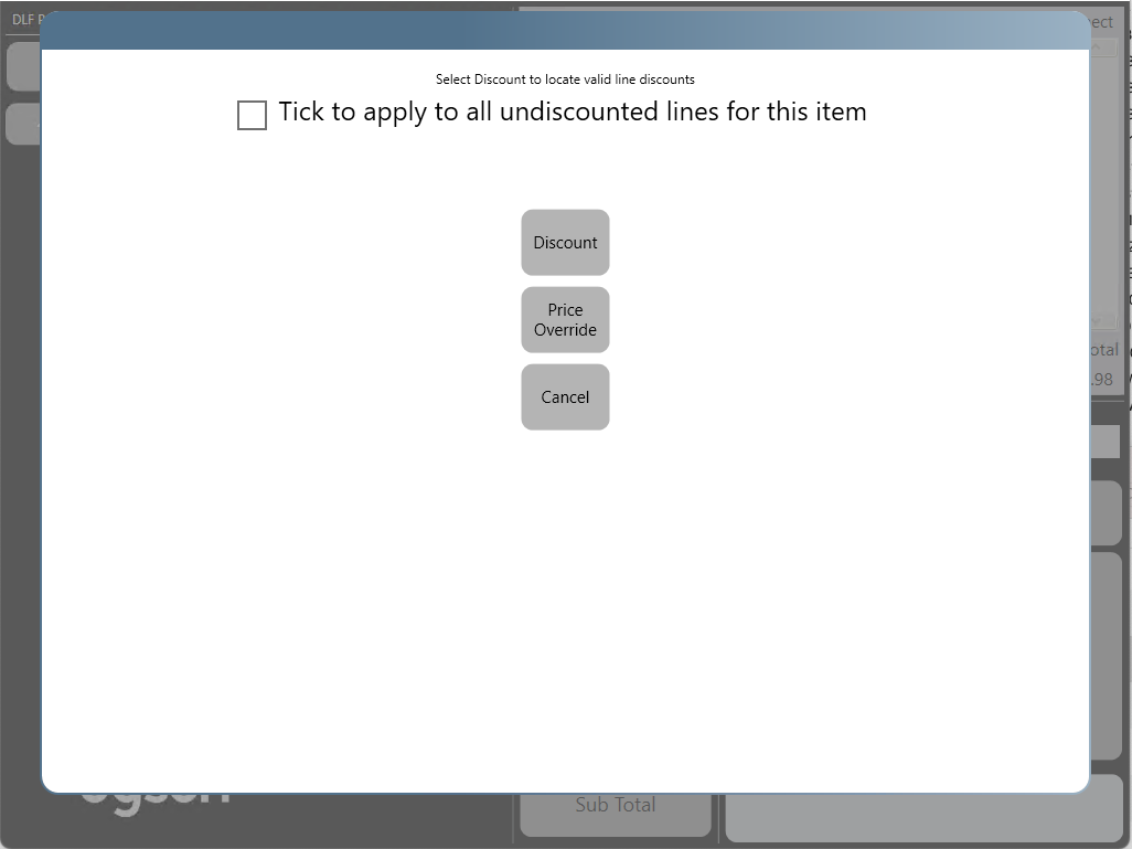 You can also optionally tick the 'Tick to apply to all undercounted lines for this item' box, if this box is ticked then the discount will be applied to every occurrence of the same product SKU on the sale.