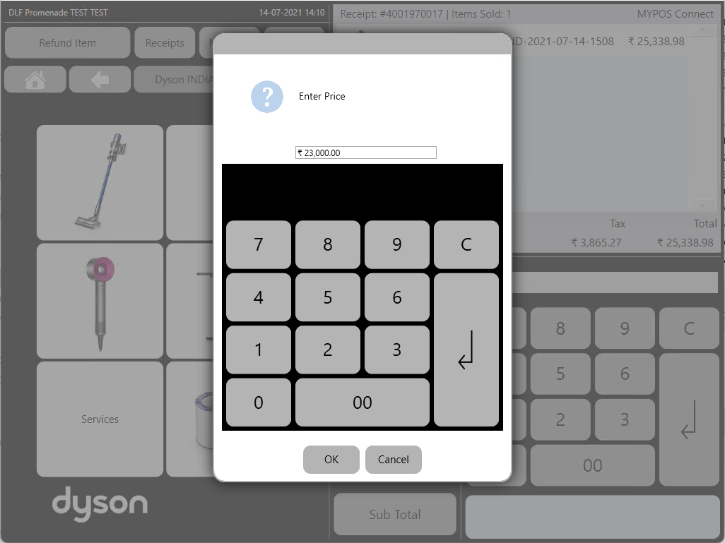 To Apply a Price Override select the 'Price Override' button, if you have Price Override Permissions on your account you will then be able to type a price into the pop up and press 'ok' to change the price