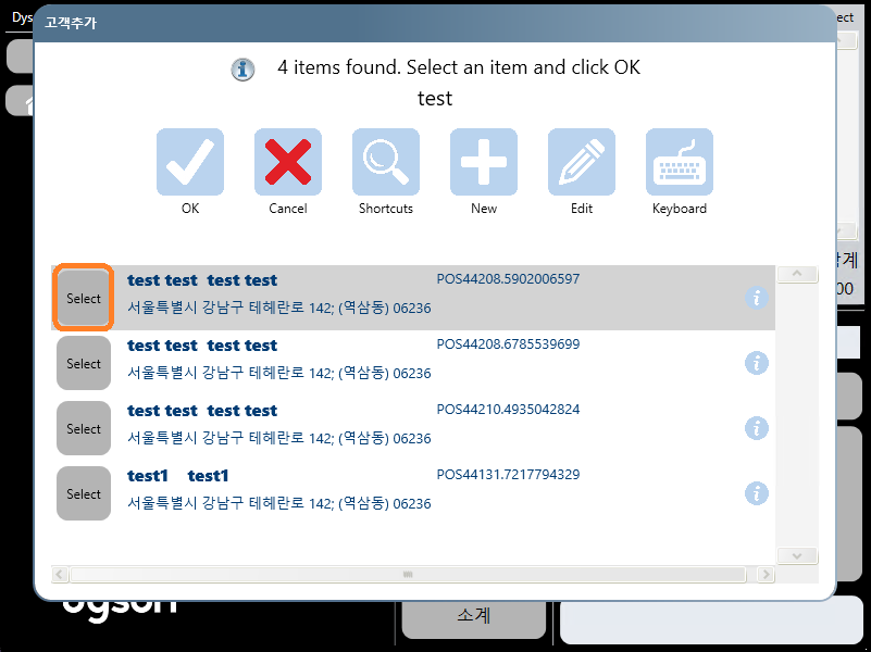KOR - 5단계 – 제품/고객 등록 Chris Heath Apr 06, 2026 0 제품을 선택한 후 결제 전에 고객추가 을 선택하십시오. 기존 고객을 검색하거나 새로운 고객을 입력하십시오. 기존 고객을 검색하려면 텍스트 상자에 이름을 입력한 후 적절한 고객을 선택하십시오. 고객 선택 시 해당 고객의 이름이 영수증에 나타납니다 새로운 고객의 정보를 시스템에 입력하려면 신규를 선택하십시오. 그리고 고객의 세부 정보를 입력하십시오. 완료 시 고객의 이름이 영수증에 나타납니다.