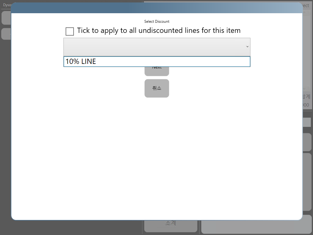 KOR - 9단계 – 할인 Chris Heath Apr 06, 2026 1 제품을 입력하십시오. 연필 아이콘을 선택하십시오. 디스카운트 옵션을 선택하십시오. 드롭다운 메뉴에서 해당하는 할인을 선택하십시오. 그러고 나면 할인이 적용되고 영수증에 표시됩니다.