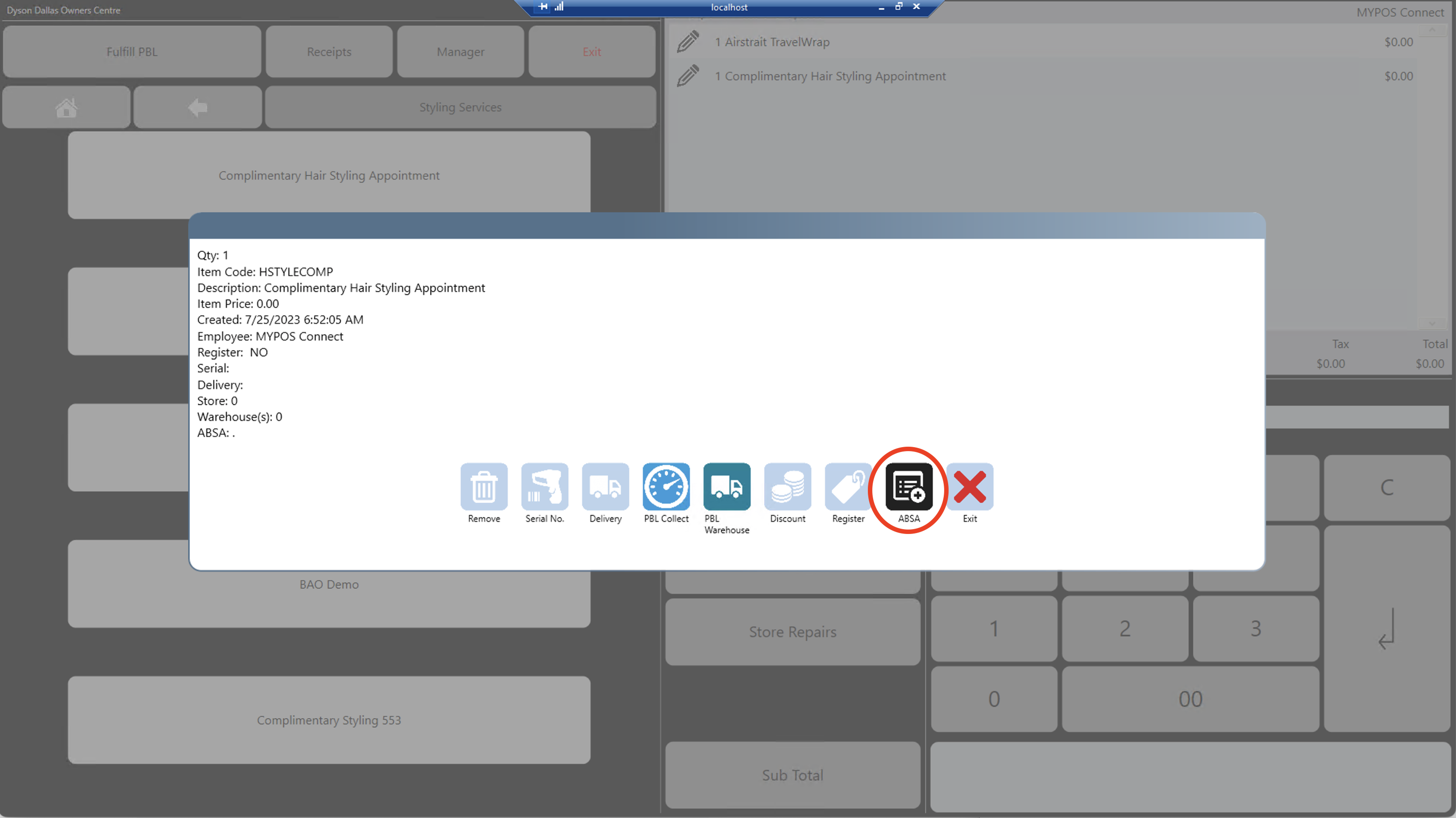 Products which are rang into the MYPOS system with zero value (free of charge) need an ABSA reason picking when they are rung up into the MYPOS UI, if a product is either zero priced by default, zero priced by promotion/discount, or price overridden to zero price you will need to pick an ABSA reason before you are able to proceed to sub total the sale.