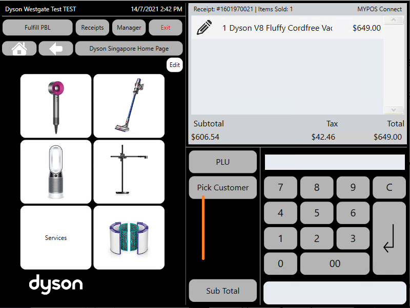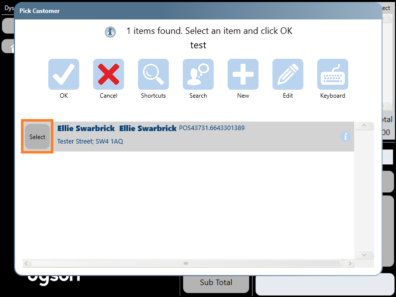 Once you have pressed the 'Select' button for the correct customer, their name will show in the till roll.