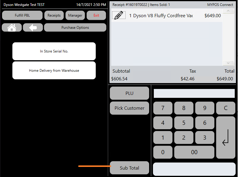After the Product(s) have been scanned/selected, the customer has been added and the serial numbers/warehouse delivery options have been selected you are ready to proceed to the payment stage.