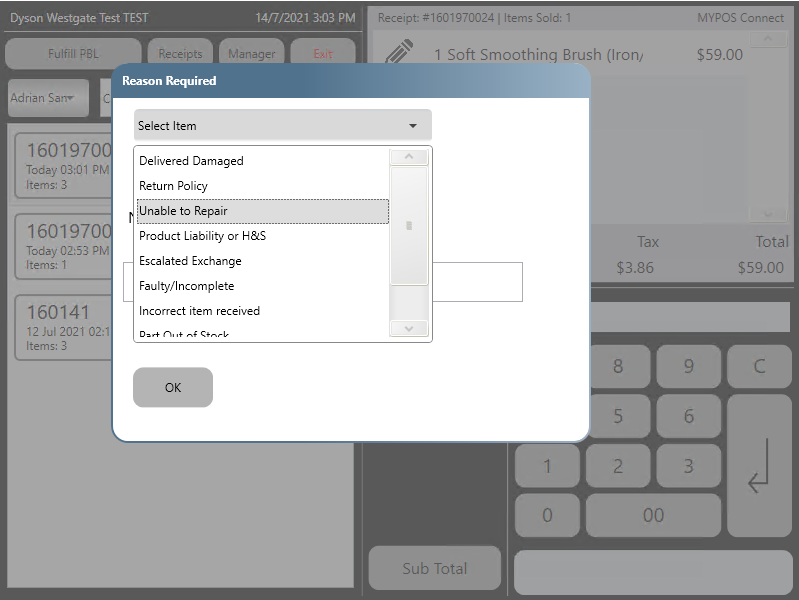 Select a Refund Reason from the drop down list and press 'ok'