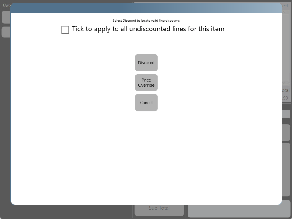 You can also optionally tick the 'Tick to apply to all undercounted lines for this item' box, if this box is ticked then the discount will be applied to every occurrence of the same product SKU on the sale.