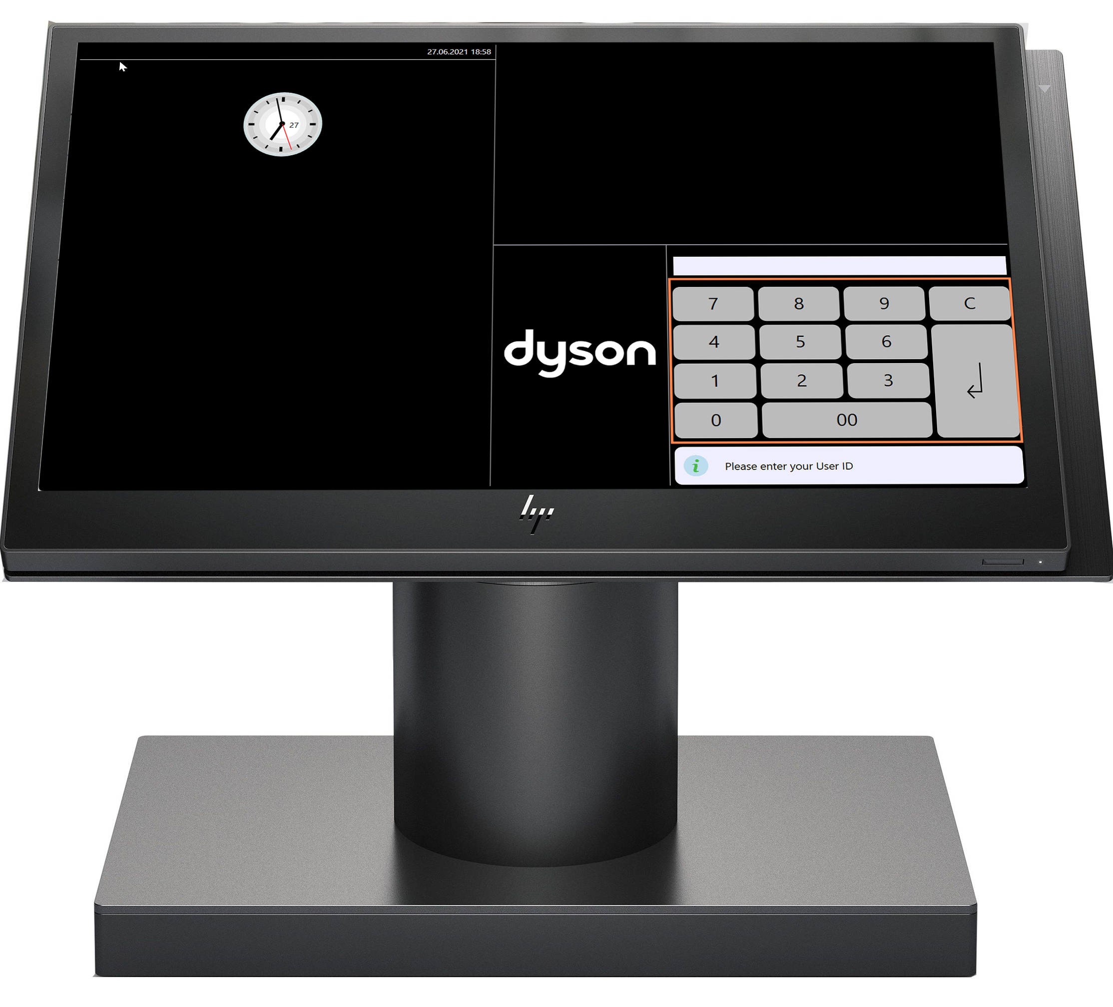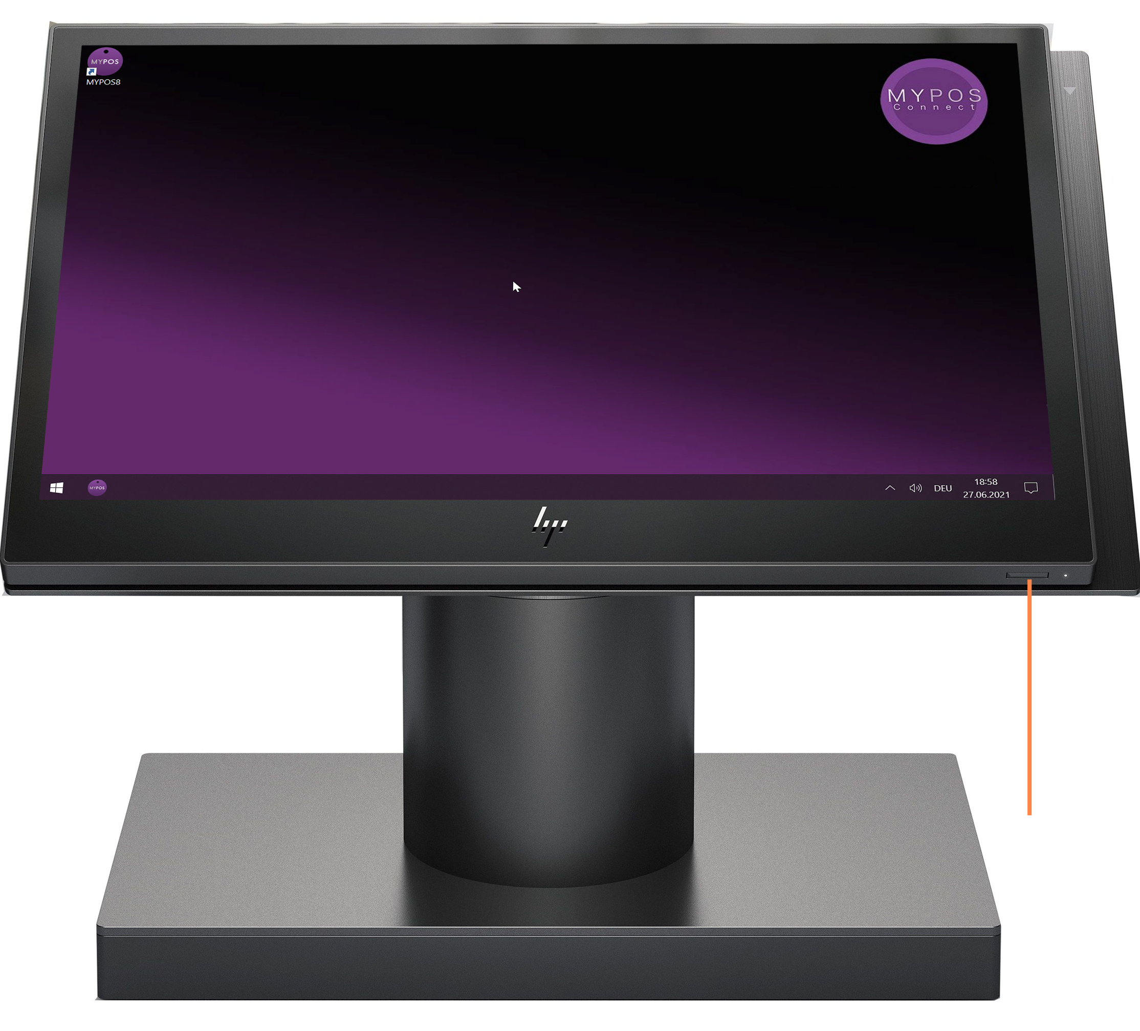 The HP Engage Should be left turned on even when the store is closed, this allows maintenance and updates to be run overnight, If the HP Engage is Switched off it can be turned on by pressing the power button in the lower right hand corner of the screen