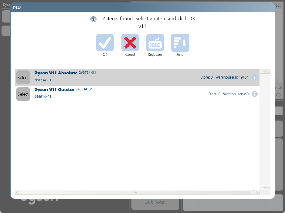 Start typing some information about the product, for example the product description, the barcode or the product code, as you type results which match will appear